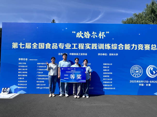 近日,“欧倍尔杯”第七届全国食品专业工程实践训练综合能力竞赛总决赛在吉林大学举行。本次比赛共有全国45所学校代表队135名选手参赛。经过激烈角逐,我院胡梦苹、申子航和程琪等3位同学组成的参赛队,在黎冬明、颜贤仔和许海霞老师的指导下,荣获全国总决赛二等奖。