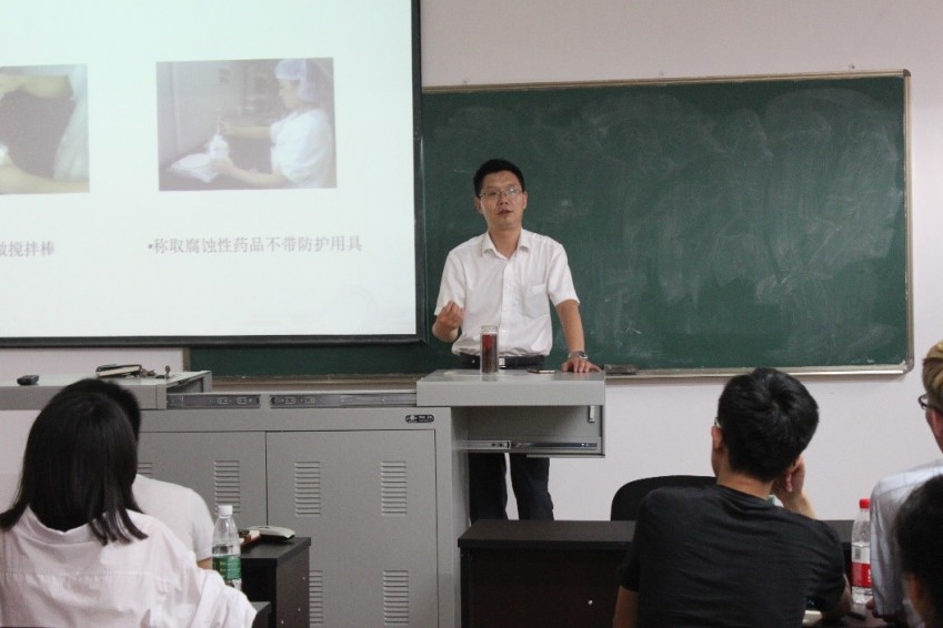 2018年9月18日下午,食品学院2018级研究生实验室安全知识培训在江西省天然产物与功能食品重点实验室举行。王文君院长对学校、学院和实验室的安全规章和制度进行了系统讲解,结合具体案例详细介绍了实验室中的危险源和不安全行为以及实验室、办公区消防安全等方面的注意事项,重点强调了危险试剂的使用和废液的处理。此次培训提高了同学们的安全观念,强化了研究生的安全防范和自我保护意识,为实验室的安全管理工作奠定了良好的基础。