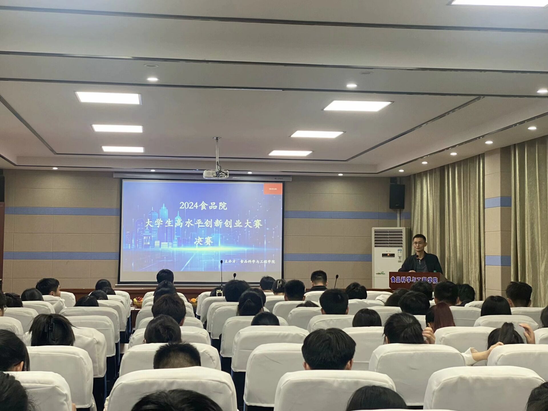 329,由学院主办、院大学生自我管理与服务中心科创部承办的食品院2024年“互联网+”大学生创新创业大赛决赛于学院报告厅正式拉开帷幕。