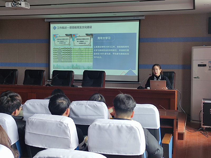 3月9日下午,我院团委、学生会、大学生自我管理与服务中心述职大会在院办5楼报告厅举行,院党委副书记胡丹出席大会并讲话,院团委、学工办老师担任评委。院团委、学生会、大学生自我管理与服务中心各部门学生负责人,各班班长、团支书共计60余人参加了大会。