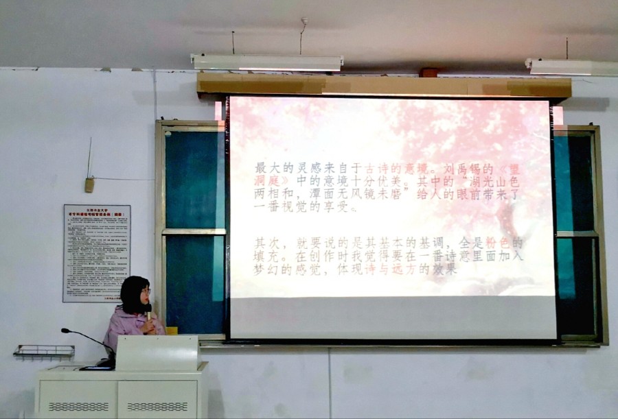 为激发我院学生创造力,活跃校园文化气息,展示当代大学生朝气蓬勃的青春风采,学院于11月30日晚七点在二教208室举办了以“发扬艺术之光 传承书画风采”为主题的新生明信片设计大赛。本次比赛邀请到了职师院杨碧薇老师担任评委。