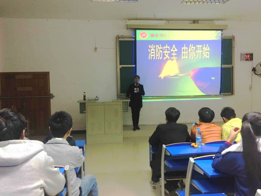 为了普及消防安全知识,增强同学消防意识,2016年11月29日晚7点,我院特邀赣安消防公益培训中心讲师欧阳教官在二教107为我院学生举办了以“消防安全由你开始”为主题的消防知识讲座。