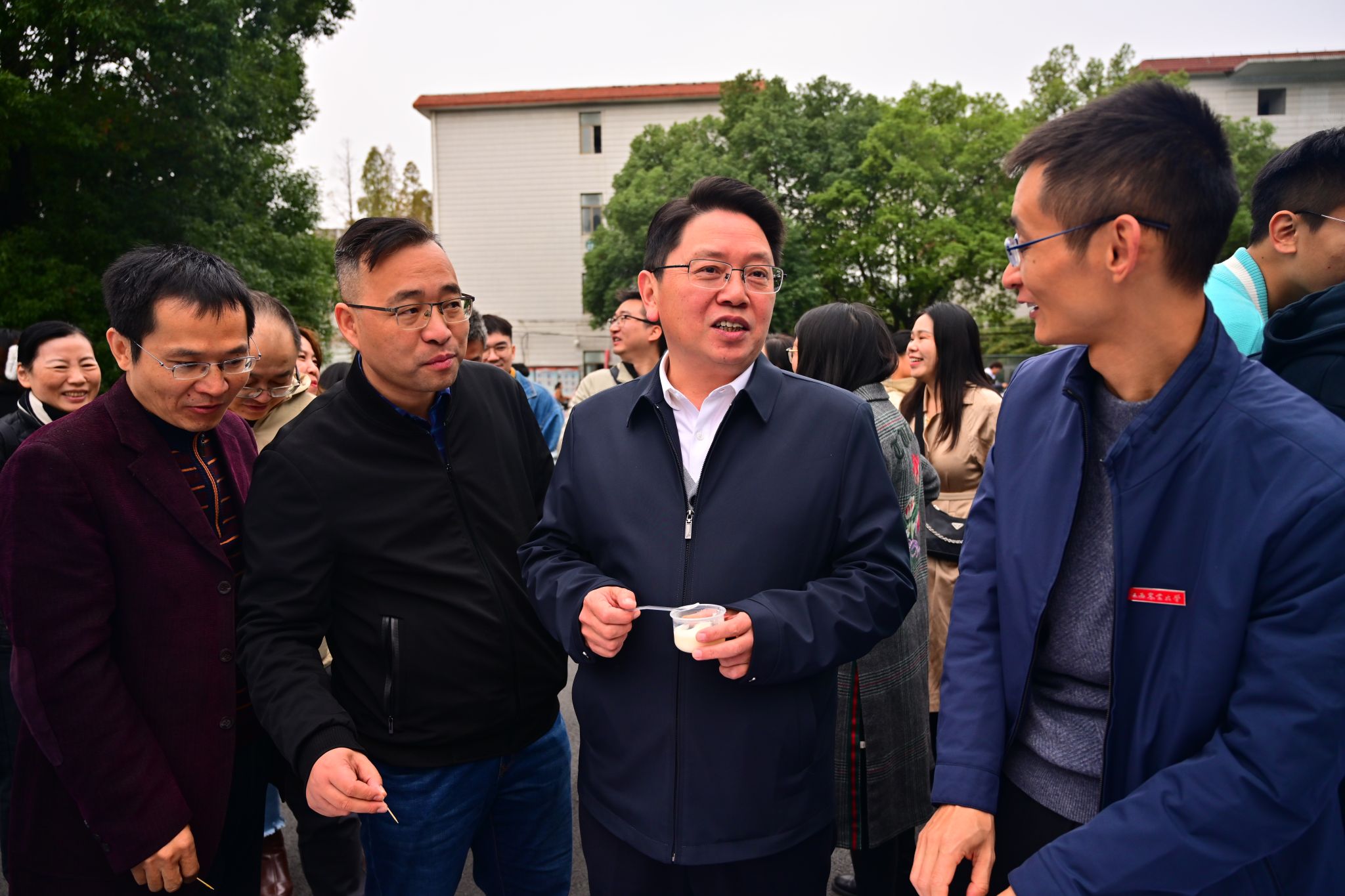 博览会上,刘斯龙充分肯定了食品科学与工程学院各科研团队取得的成果,并鼓励科研团队成员要积极关注食品前沿科技,坚持自主创新,努力将科研成果转化为发展动力。