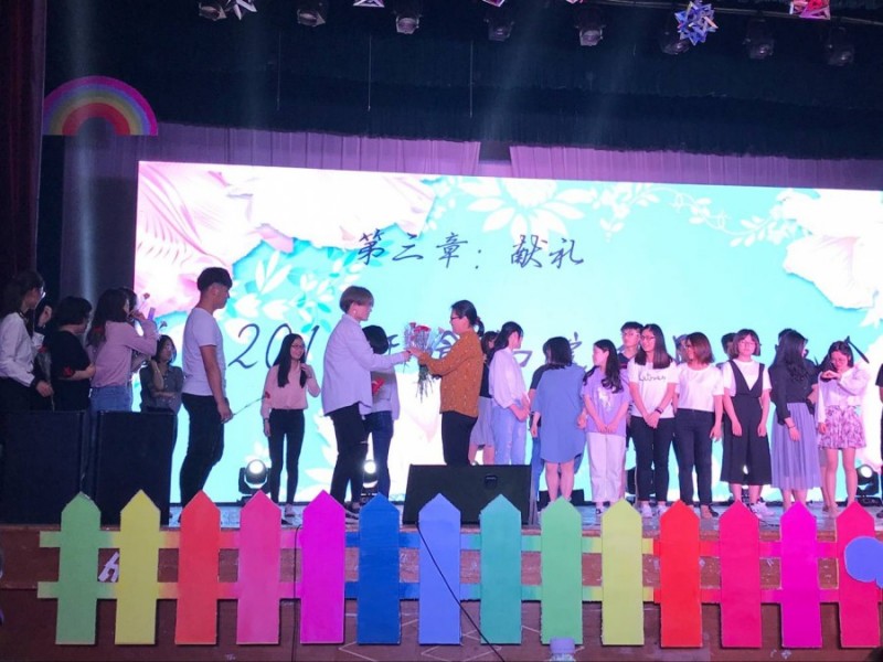毕业晚会以青春活泼的开场舞拉开序幕。接踵而至的小品、啦啦操、合唱、舞蹈、、乐器合奏等节目彰显艺术色彩。回望尽头留下青葱岁月,展望前方不尽似水流年,人影秀《食忆芳华》勾起了大家对大学生活的无尽回忆。最后的师生互动更是感人至深,老师衷心的祝福,学生真诚的感谢,给本次晚会画上了圆满的句号。